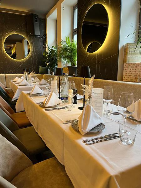 90 Sitzplätze im Restaurant- und Bistrobereich, eine große, geräumige Bar die schon vormittags Lust auf lange Cocktailabende macht, sowie unsere Sonnenterrasse laden zum verweilen ein.